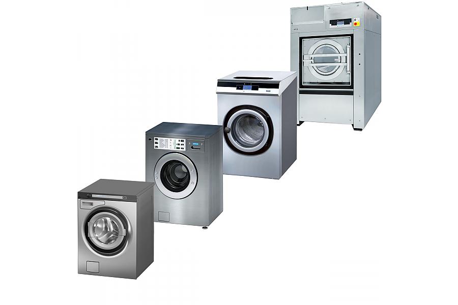 For example, the rotary ironers can be equipped with different connections and functions regulated digitally or with a touchpad. The washing machine models differ in capacity, the volume of the drum and the spin speed. Even commercial dryers are available in different capacities and are also stackable.