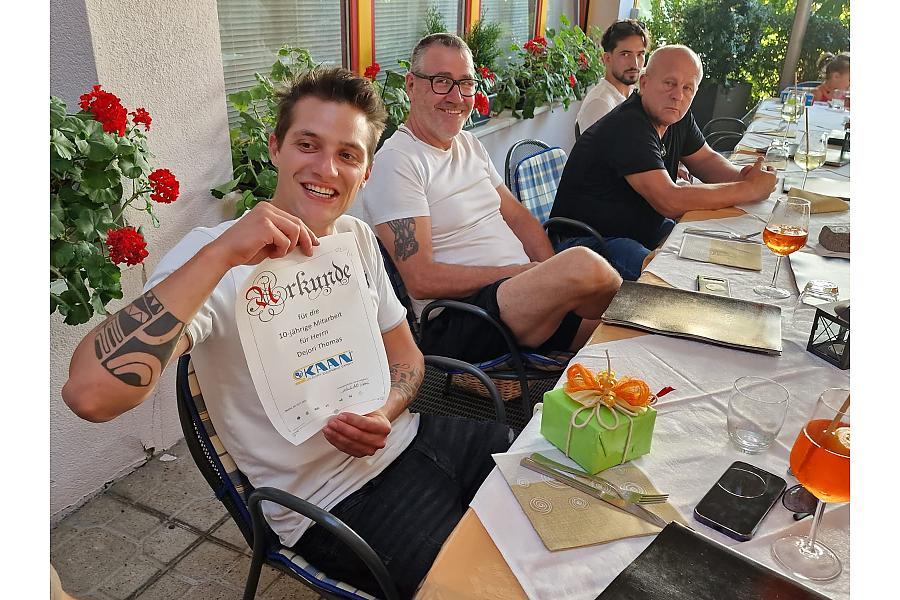 Per 20 anni, la ditta KAAN ha la sua sede attuale in Gostner Wiese 1 a Blumau / Cornedo. Questo è stato celebrato con un accogliente incontro con una pizza.
